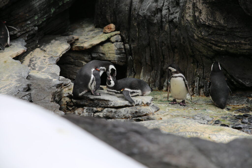 il y avait un aquarium central que tu voyais tous le temps et plein d’autres plus petits avec :des pingouins (d’on un qui s’appelait Eva ),