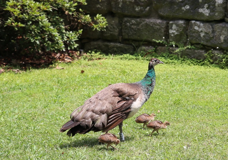 Il y avait beaucoup de plantes et de grands arbres qui faisaient une ombre bien accueillie par la chaleur. Des oiseaux de toutes sortes se baladaient en liberté : des poules, des pigeons, des paons et même des bébés tous mimis.