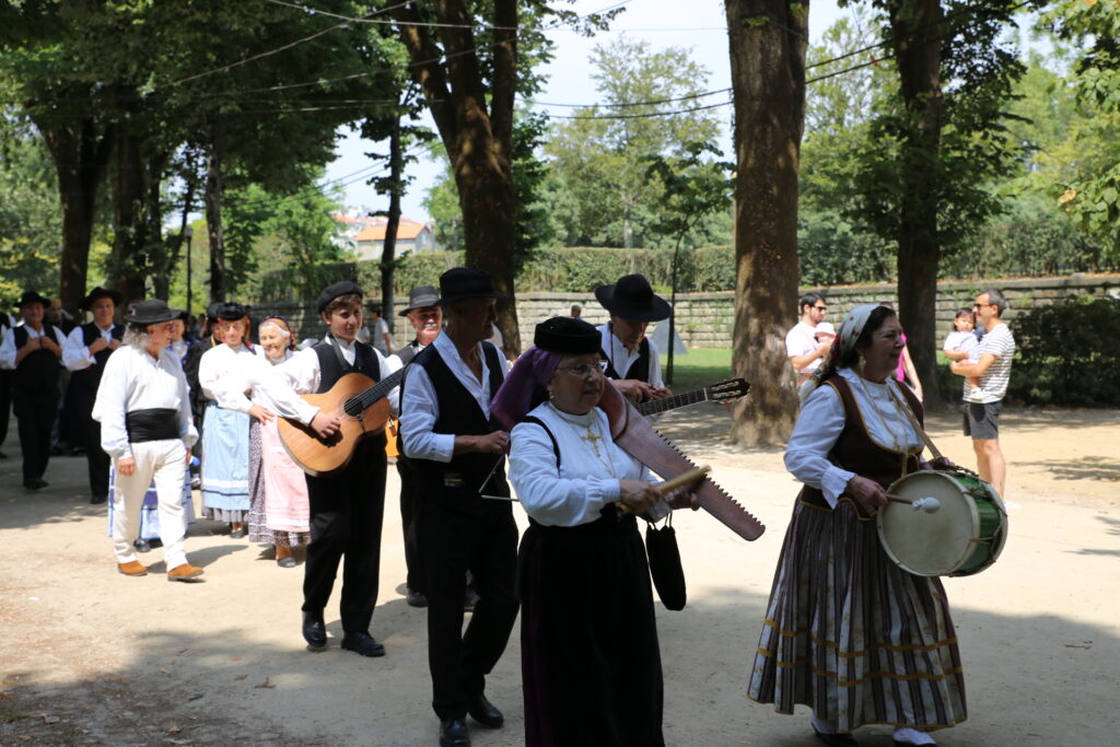 Nous avons pique niqué sur un banc à coté d’une fontaine et d’une mouette qui risquait à chaque instant de larguer une crotte de piaf sur la tête… Puis, à tout hasard, nous sommes tombés sur une espèce de fête folklorique de Porto. Ils sont tous arrivés en cortège avec leurs habits traditionnels et en musique.