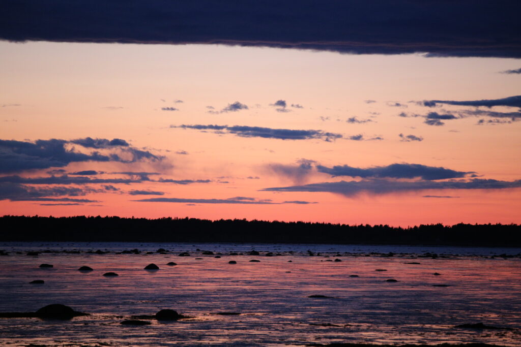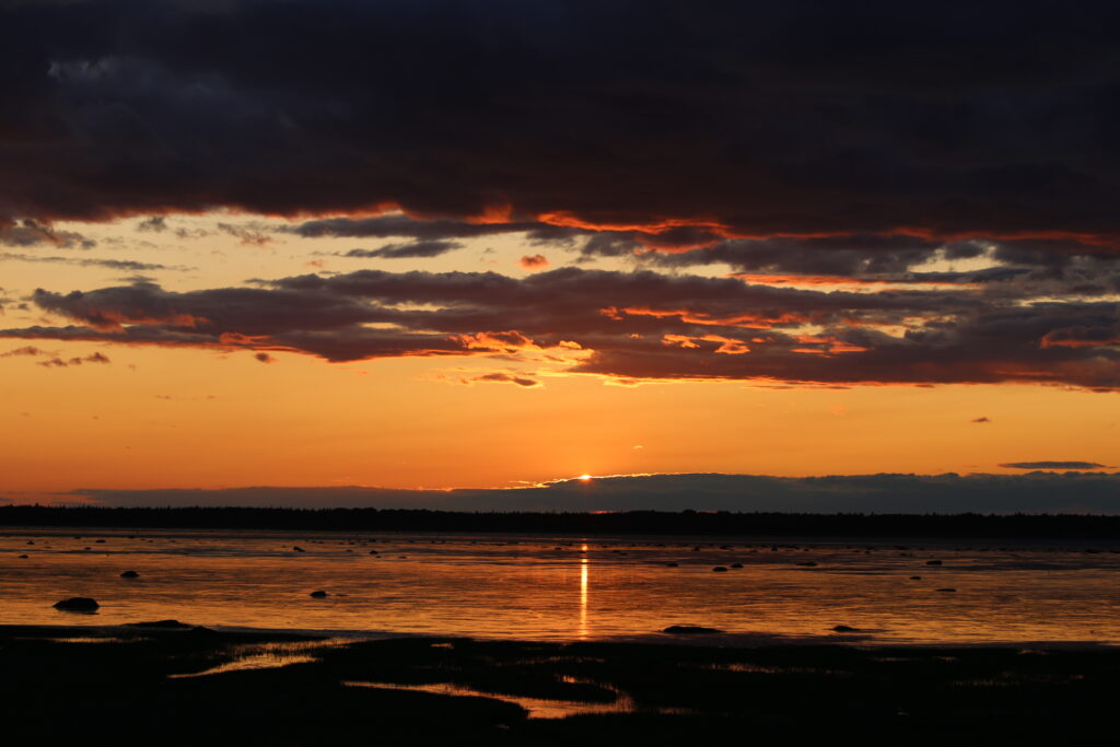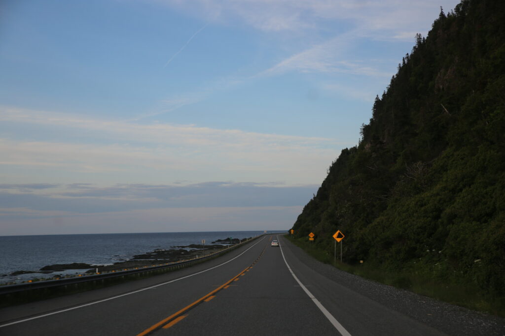 Et oui ! Mon rendez-vous préféré est le coucher de soleil magnifique que nous avons pu apercevoir sur le bord du Saint-Laurent, un fleuve qui borde le village de Rimouski où nous avons logé. Après avoir bien profité de la piscine intérieure de l’hôtel, nous sommes partis pour notre prochain logement. Sur la route, nous avons fait une halte pour visiter 3 « monuments » de la région. Le petit village s’appelait Pointe-au-Père.