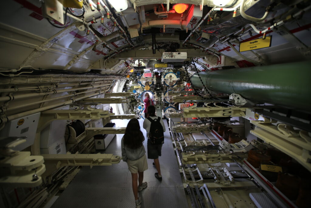 ENFIN notre dernière visite fut celle d’un sous-marin ! Bon alors il était sorti de l’eau mais quelle expérience ! On a pu découvrir comment réussissaient environ 70 personnes à vivre dans un espace confiné où aucun espace est laissé vide. C’est un sous-marin de guerre, donc il y avait le lance-torpille ( torpille c’est une bombe), la cuisine, la salle des matelots,… Nous avons aussi eu la chance d’avoir un audioguide qui nous a permis de mieux comprendre. Bon bref, c’est UN SOUS-MARIN QUOI.