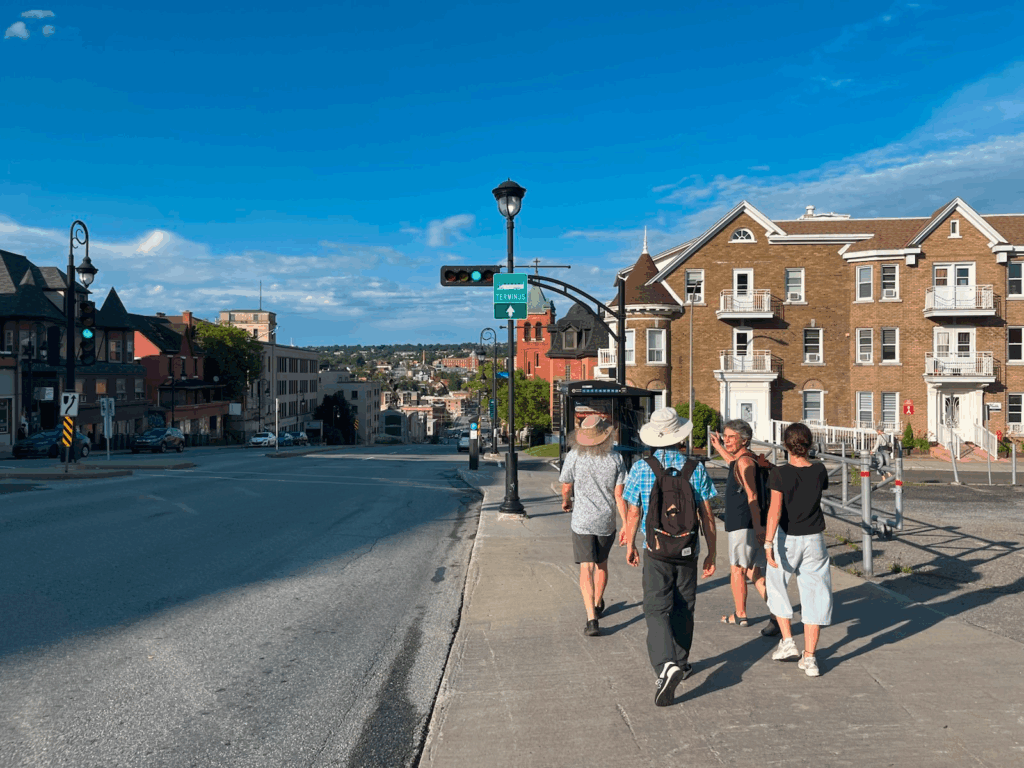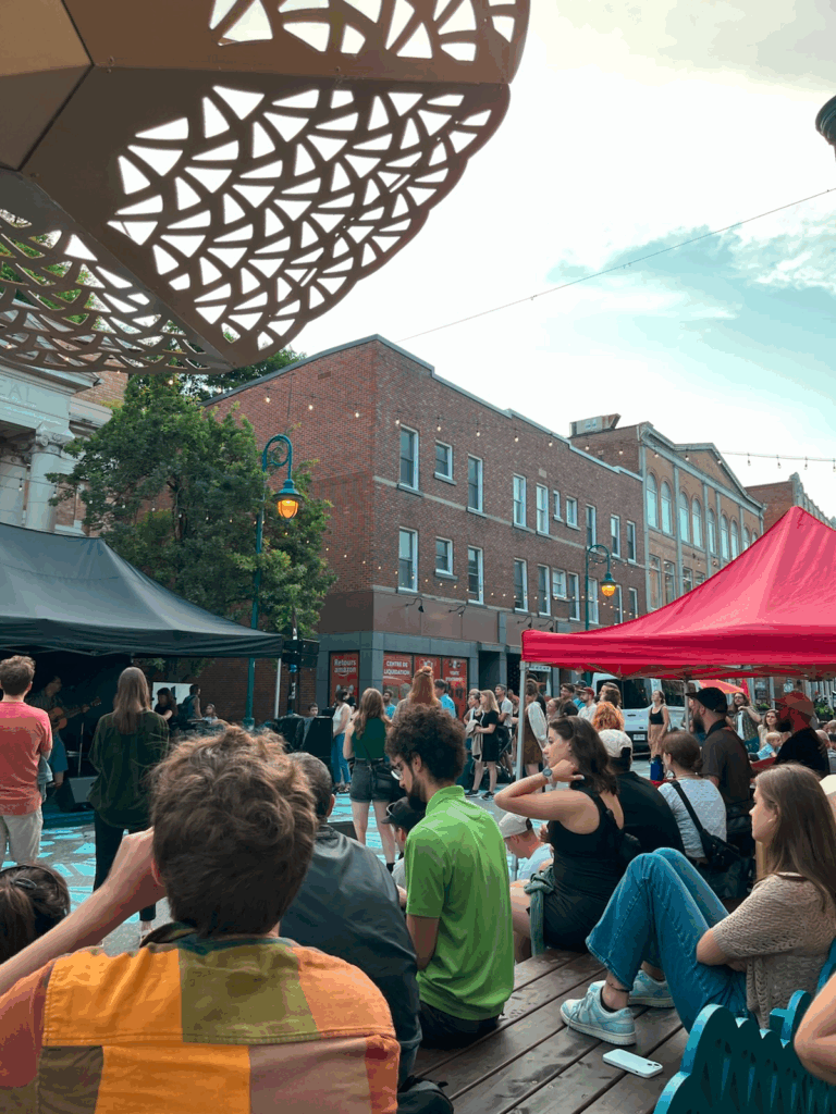 Continuons notre visite dans le quartier piéton de la ville. Nous avons flâné dans les magasins d’habits et les librairies trop mimi de la ville. Nous sommes finalement arrivés à notre lieu final : un concert dans la rue piétonne joué par un groupe de rock québecois assez insolite. Puis, à la fin du concert, nous sommes repartis dans notre bonne vieille campagne l’estomac retourné par la cuisine locale, des tops trouvés en fripe et des belles photos dans l’appareil.