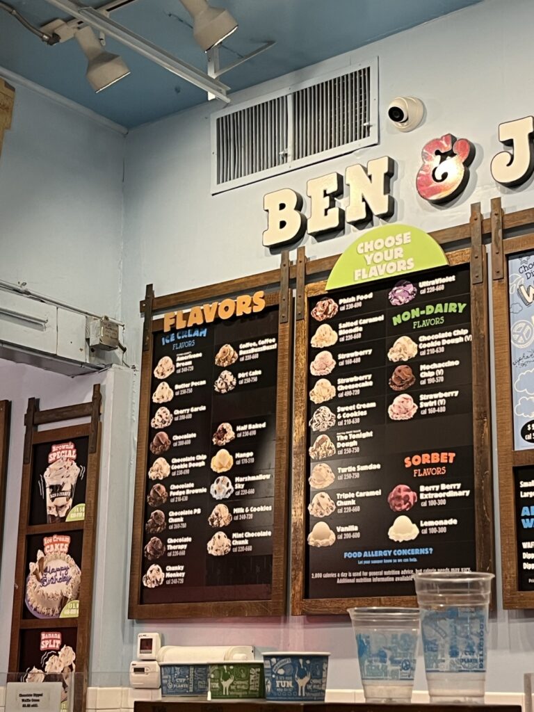 On avait repéré un magasin de glaces Ben and Jerry pour le soir: à côté de chaque parfum, il y avait le nombres de calories que cette douceur aurait apporté à notre organisme, histoire de gâcher le plaisir.